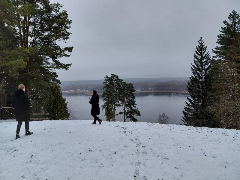Vieną baltą, snieguotą lapkričio dieną II kurso mokiniai susiruošė į Visaginą. Pakeliui sustojome gražiausioje Aukštaitijos nacionalinio parko vietoje, prie Ladakalnio. Nužvelgę ežerus ūkanotuose toliuose, sušokome „Laurencija“ ir patraukėme į žygį Ginučių piliakalnio link. Pakeliui darydamiesi gamtos spalvų, (licėjuje juk spalvų savaitė) kildami ir leisdamiesi įveikėme ir stačiašlaitį Ginučių piliakalnį. Toliau svarbiausias mūsų kelionės tikslas - Ignalinos atominė elektrinė. Elektrinėje gidė pasveikino mus informaciniame centre patikslindama, kad mes atvykome nei į Ignalinos, nei į elektrinę, nei į atominę... Taigi, kažkada buvusi suplanuota kaip galingiausia pasaulio atominė elektrinė dabar yra prie Visagino miesto, elektros negamina ir po truputį branduolinį kurą perkelia į saugyklas. Tačiau visa tai nesutrukdė mums įsivaizduoti buvusią atominės elektrinės galybę ir svarbą tada, sovietmečiu, kai ji buvo pastatyta. Visagino miestas irgi kitoks, jaunas, jam tik 50 metų, plačios gatvės, daugiausia daugiabučiai namai, jokių kamščių, nedaug gyventojų, bet labai didelė jų tautinė įvairovė. Miestas pušyne prie gražių Visagino ir Drūkšių ežerų. Pasivaikščiojome po miestą, surinkome jo gražiausias spalvas „Kelionės spalvų“ virtualiai parodai. Praturtėję žiniomis ir įspūdžiais, prisibendravę judame link namų.